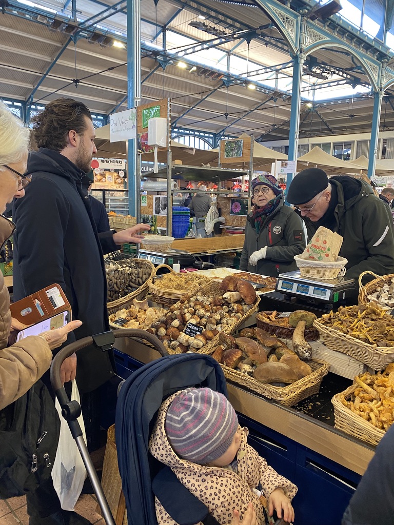 As we walked through the market, Sebastian pointed out a few local specialties. He asked if I like pork and I said I do. The next thing I know he’s buying a slice of a Dijon specialty: Jambon Persille — a pork and parsley terrine. I didn’t have the heart to tell him I’m not that keen on terrines. When we got back to the restaurant Sebastian unwrapped the terrine and poured me a lovely glass of red — a 2023 Givry 1er Cru, Les Servoisines — to go with it. The terrine was absolutely delicious. (The next day I bought a piece to share with my sisters when we met.)